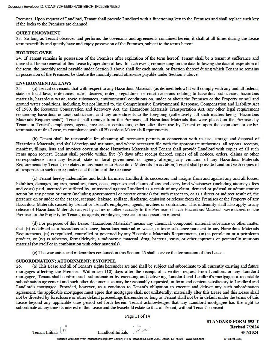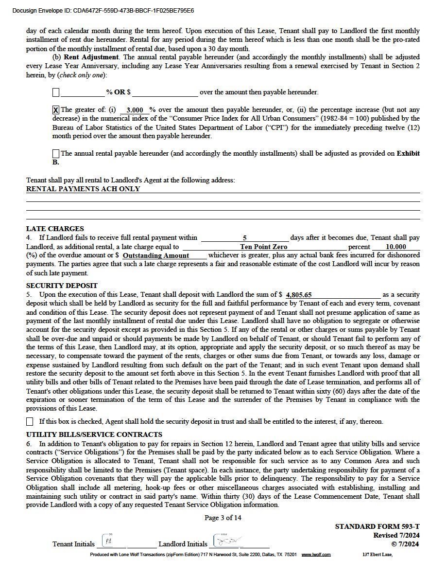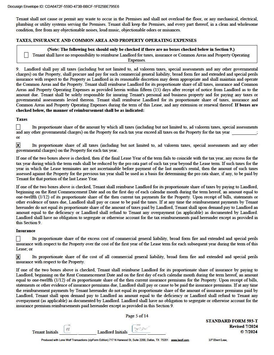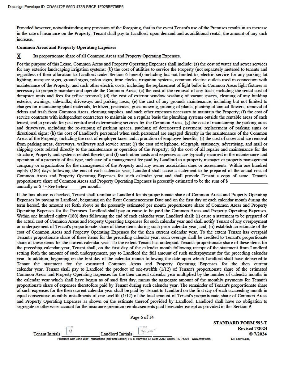 | Note: Tenant shall reimburse Landlord for Tenant’s Pro Rata share of all real estate taxes, assessments, hazard and liability insurance and common area maintenance costs for Suite 8 at Park 35. The estimated 2024 NNN charges are $3.26/SF. |